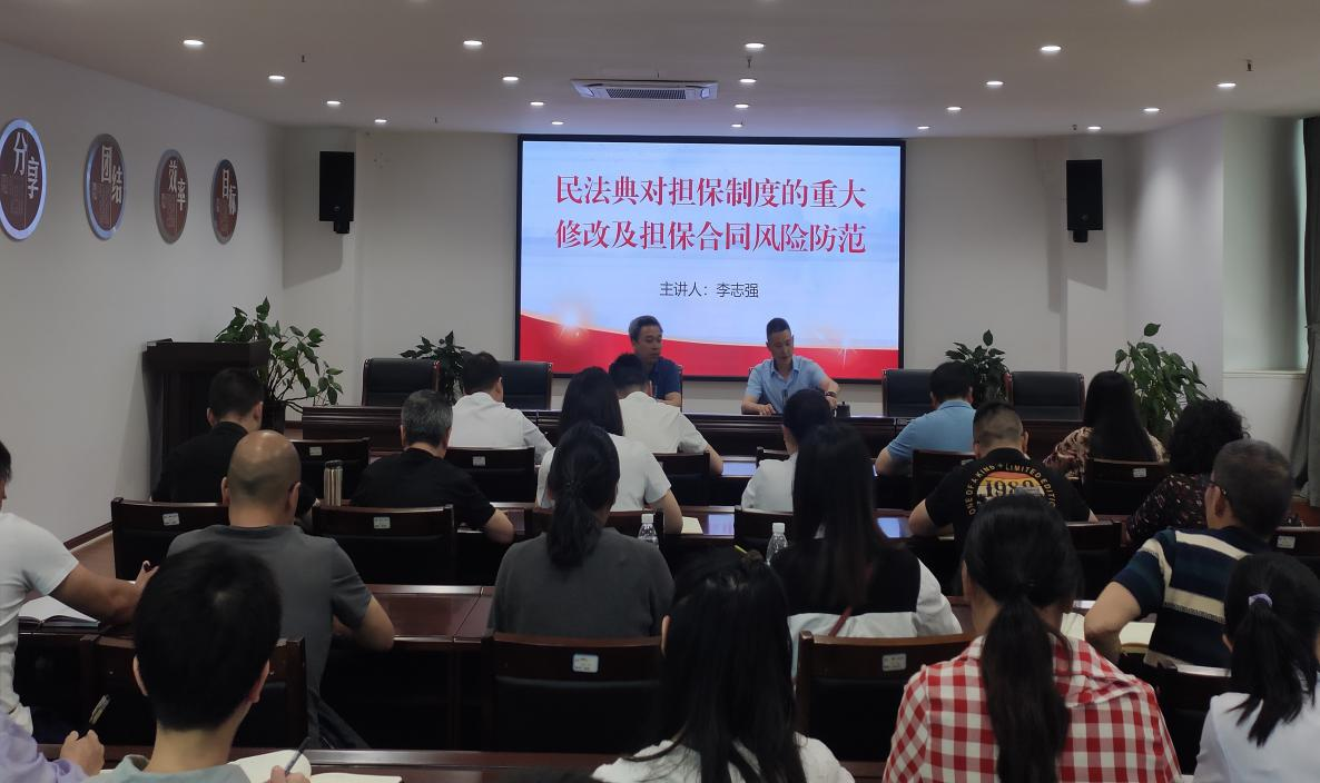 為進(jìn)一步提高風(fēng)險防范能力,幫助干部職工在實(shí)際工作中理解并正確適用擔(dān)保制度的有關(guān)法律條文,強(qiáng)化干部職工法治意識,按照“轉(zhuǎn)樹作抓”專項行動方案和年度學(xué)法計劃,5月11日,市擔(dān)保公司開展《民法典對擔(dān)保制度的重大修改及擔(dān)保合同風(fēng)險防范》專題知識講座。
